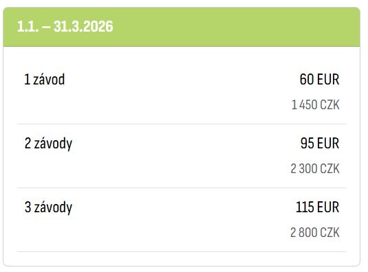 Přihlašujte se již nyní a využijte výhodné ceny startovného dle termínů.