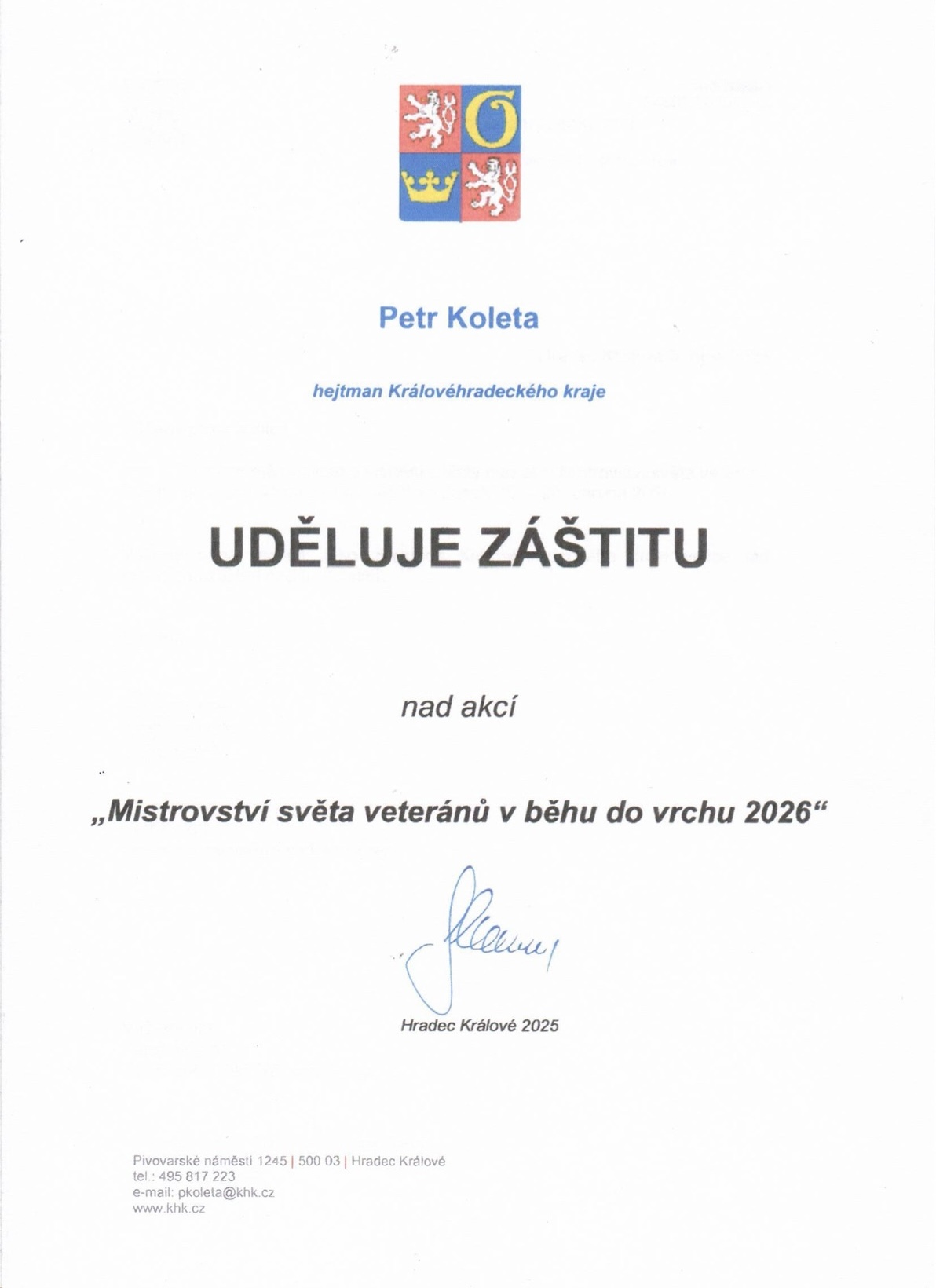 WMRA (Světová asociace pro běhy do vrchu) oznámila a zařadila do WMRA kalendáře Mistrovství veteránů v běhu do vrchu pro rok 2026, které se bude konat v malebném prostředí lázeňského města Janské Lázně na úpatí Černé hory,která je součástí našich nádherných hor Krkonoš.